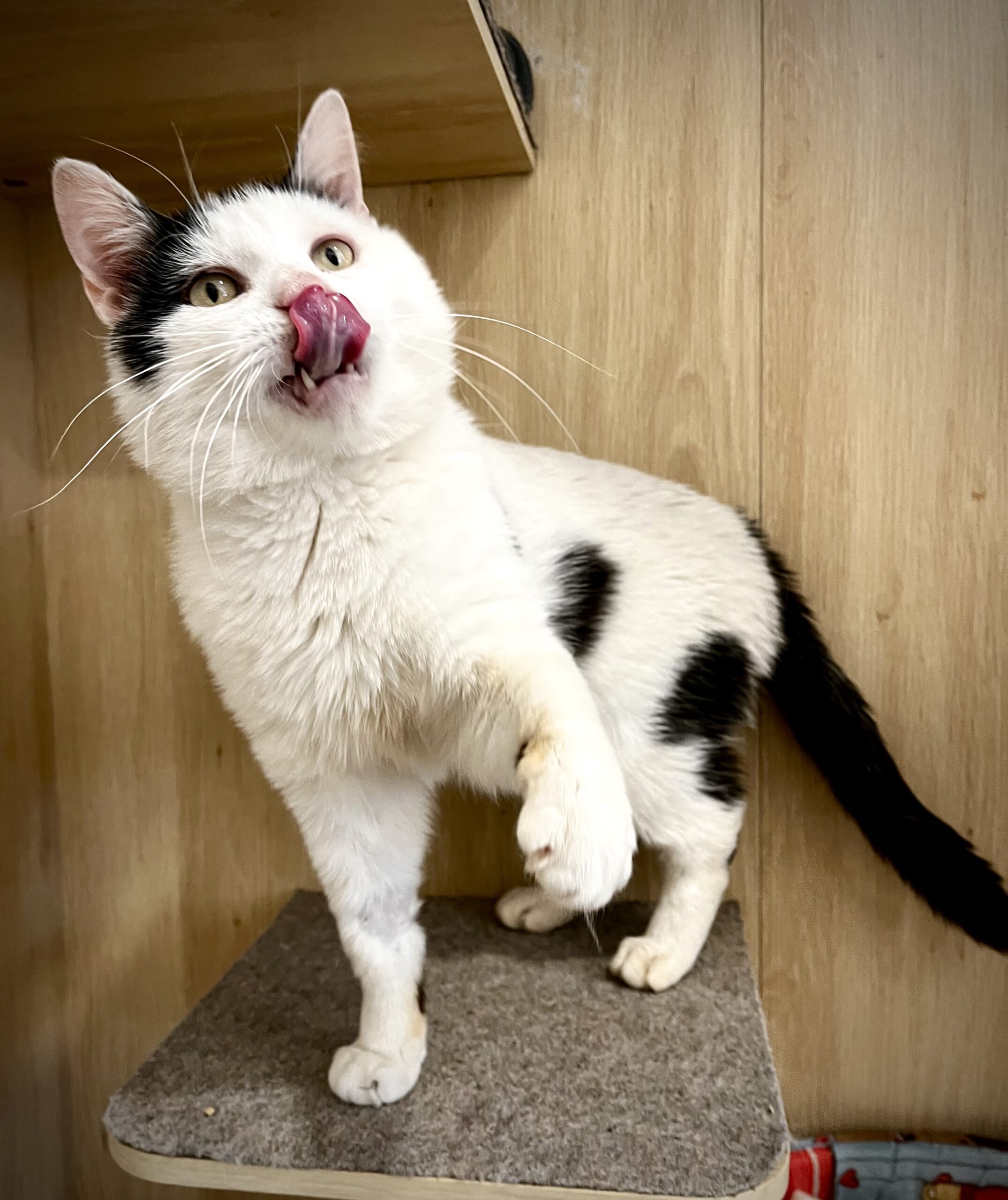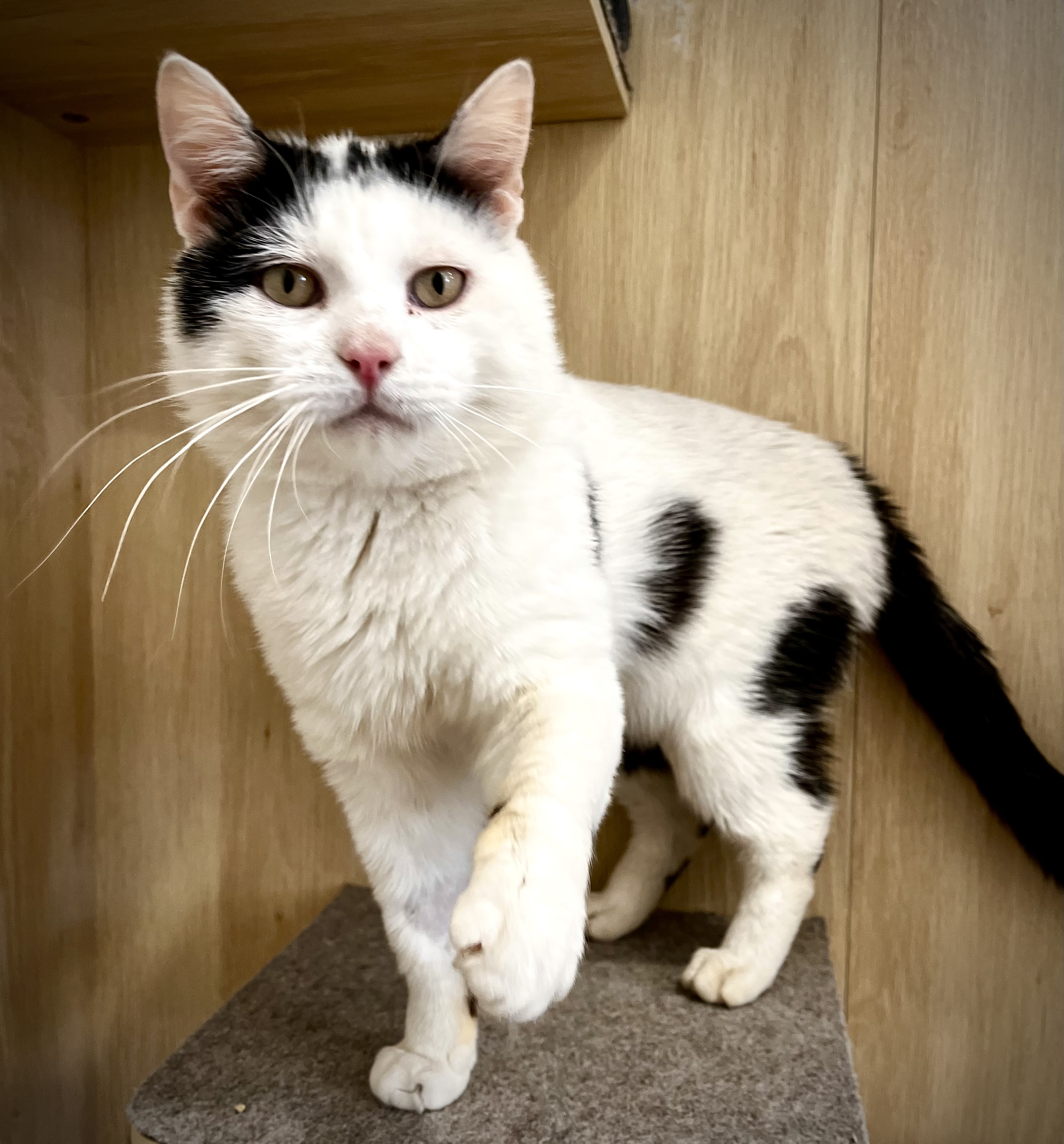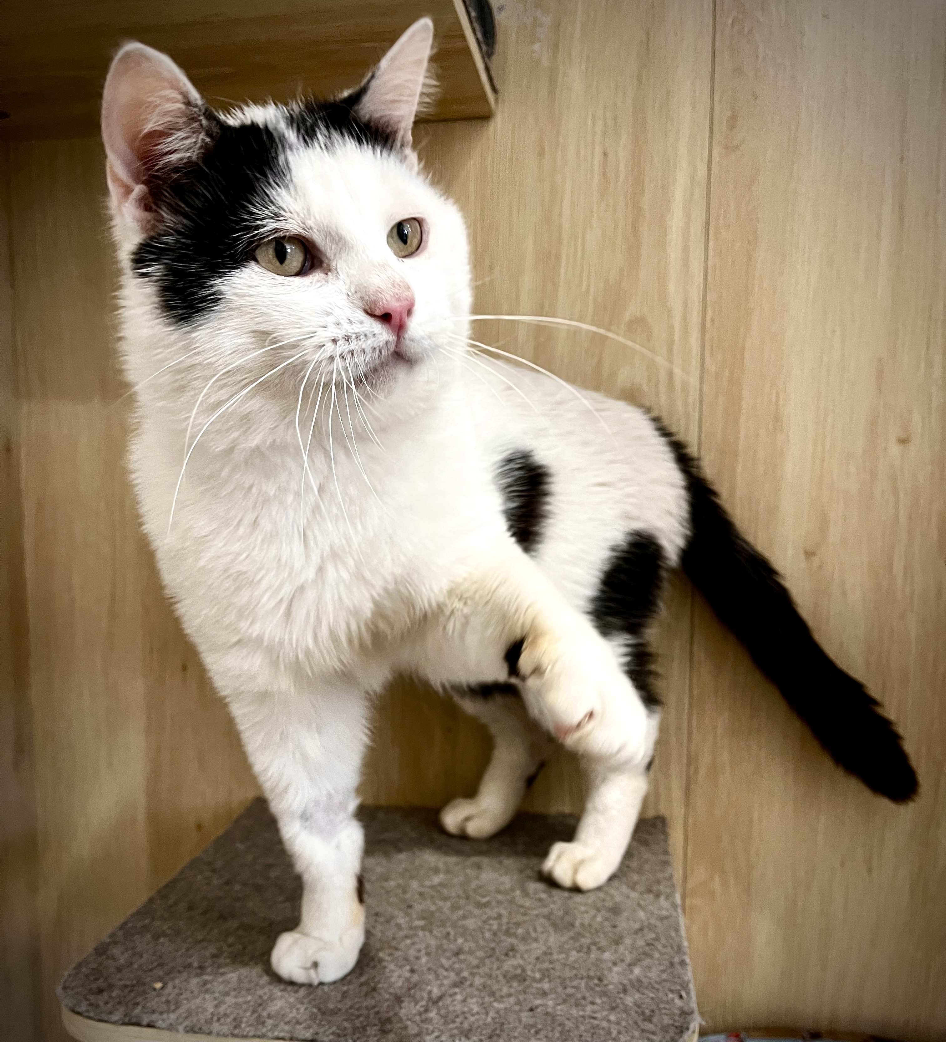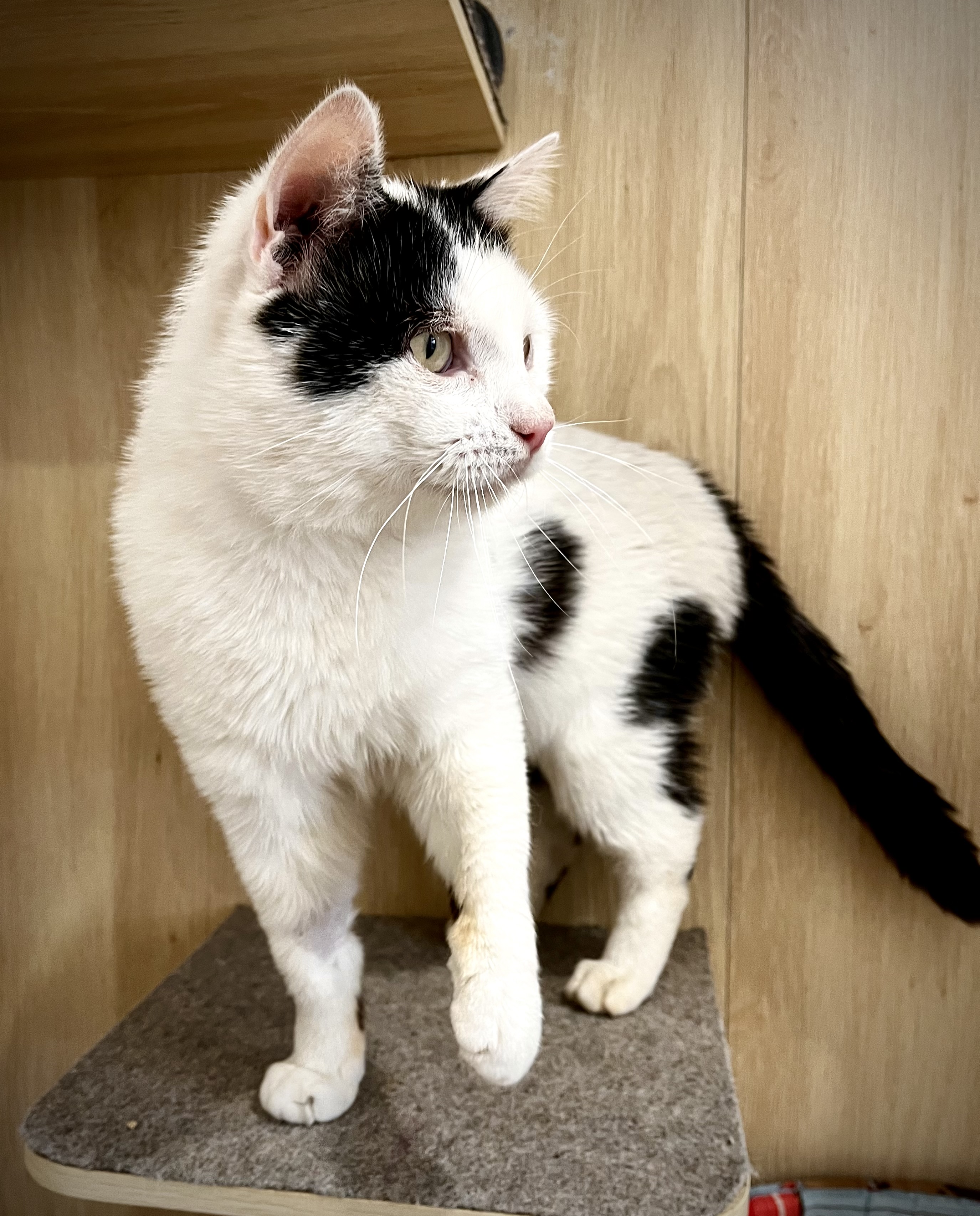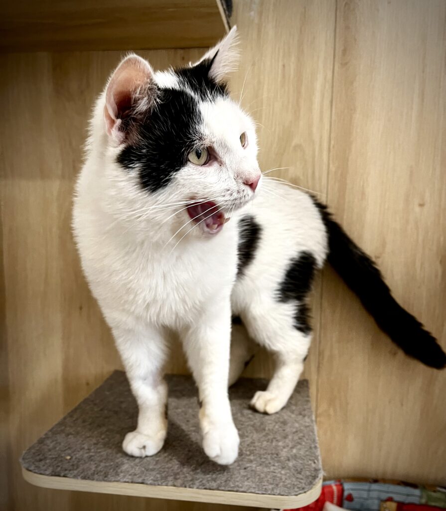 Sammy est un adorable chat noir et blanc, au caractère calme et posé. Très gentil, discret et affectueux, il apprécie la présence humaine et les moments de tranquillité.