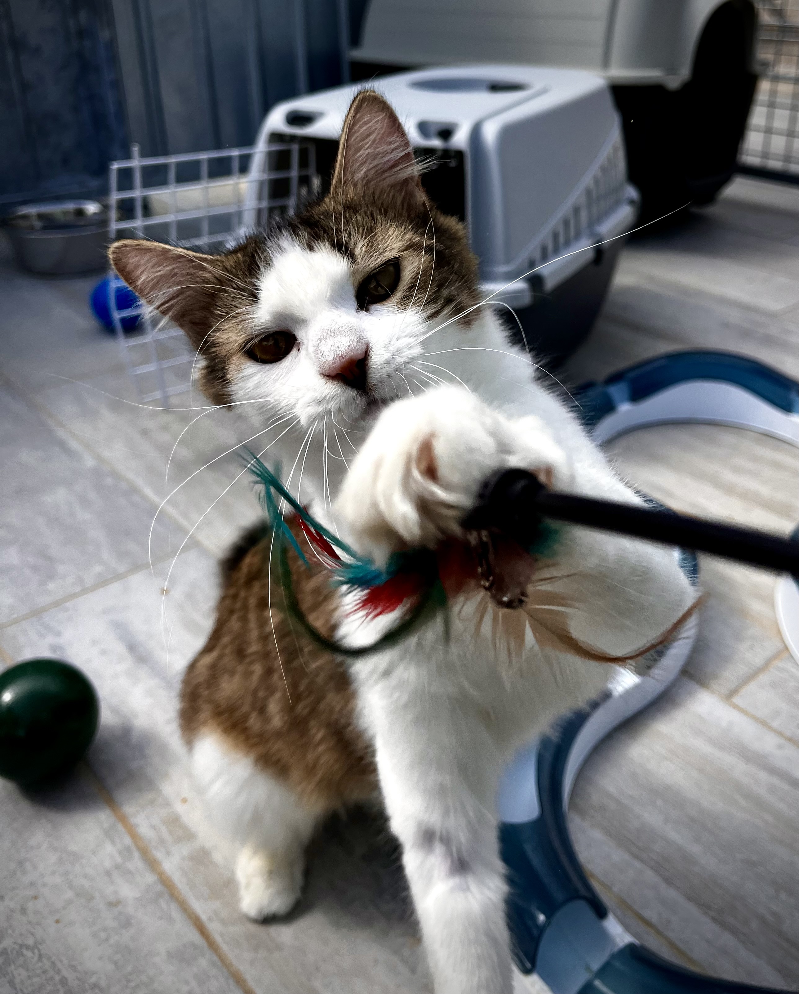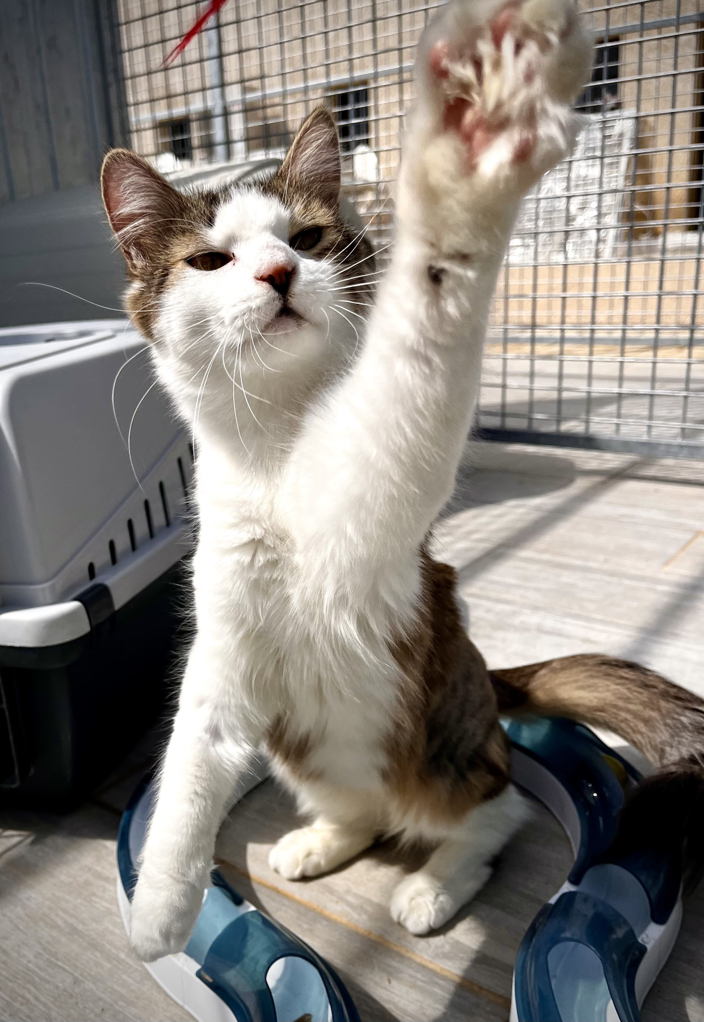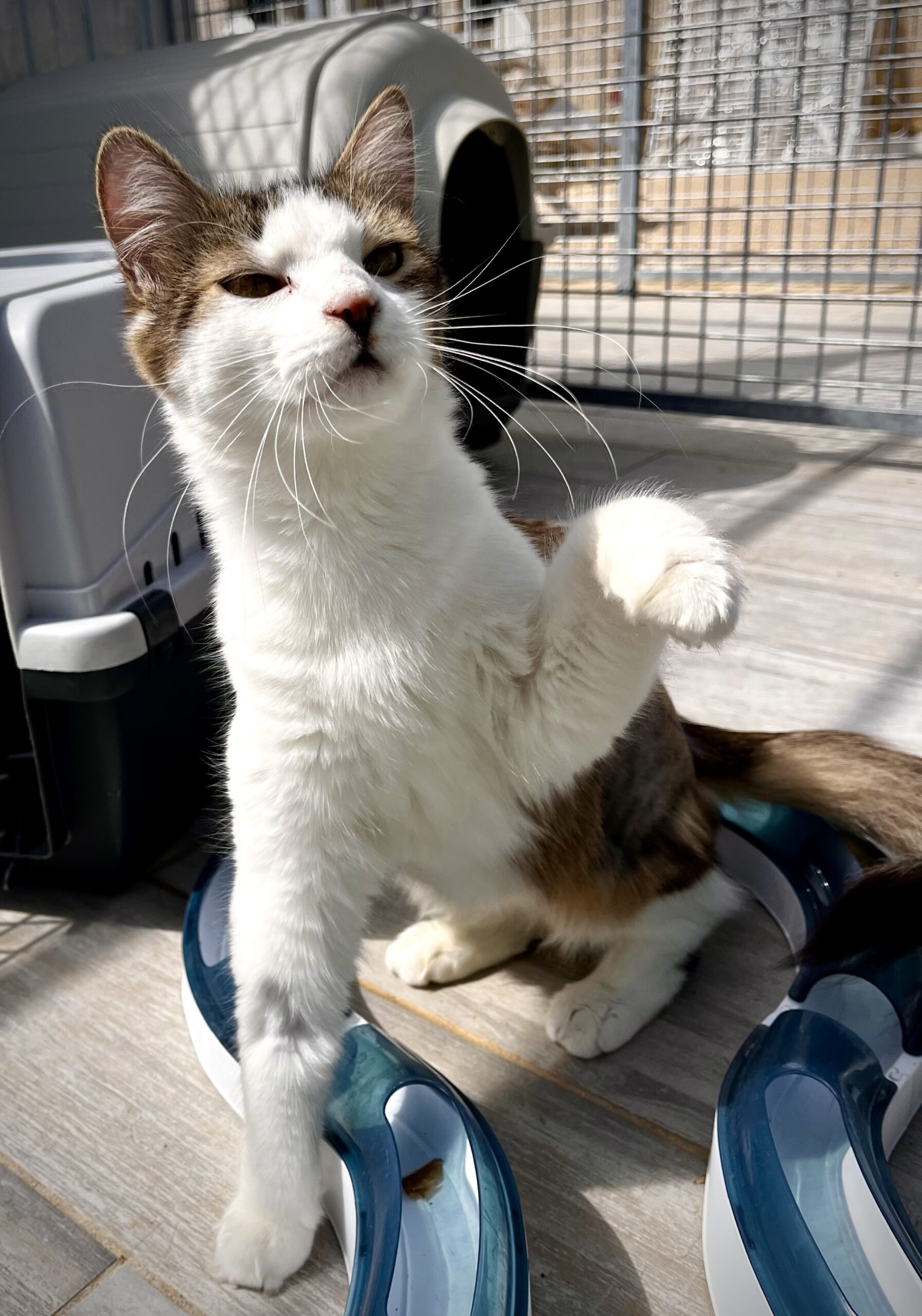 Tika est une jeune minette, probablement la sœur d’Atlas, elle aussi marquée par un événement traumatisant. Nous sommes intervenus le lundi de Pâques suite à un appel de la gendarmerie : elle faisait partie des chats retrouvés enfermés dans une maison après le décès soudain de leur propriétaire, avec très peu de nourriture et d’eau.